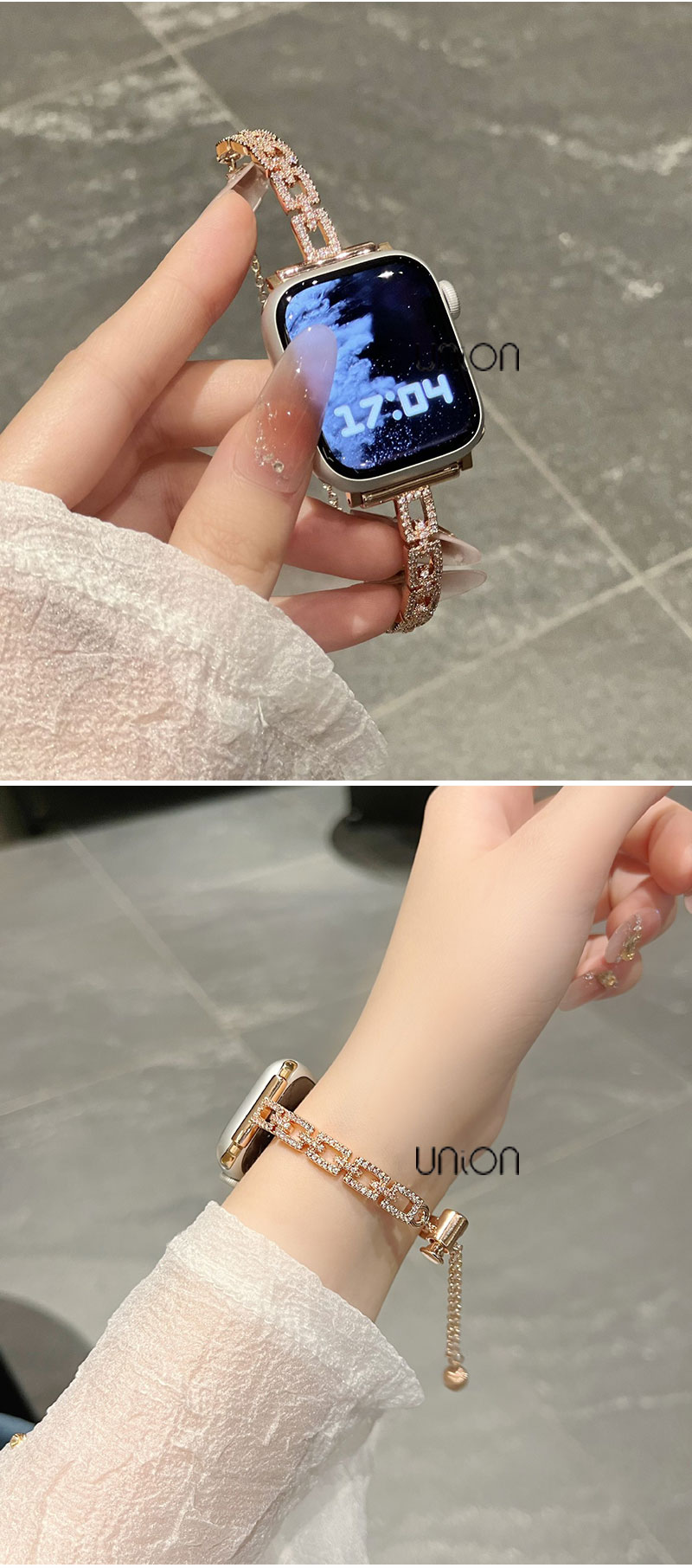 KDGL: Square micro-set zirconia bracelet with metal watch band
